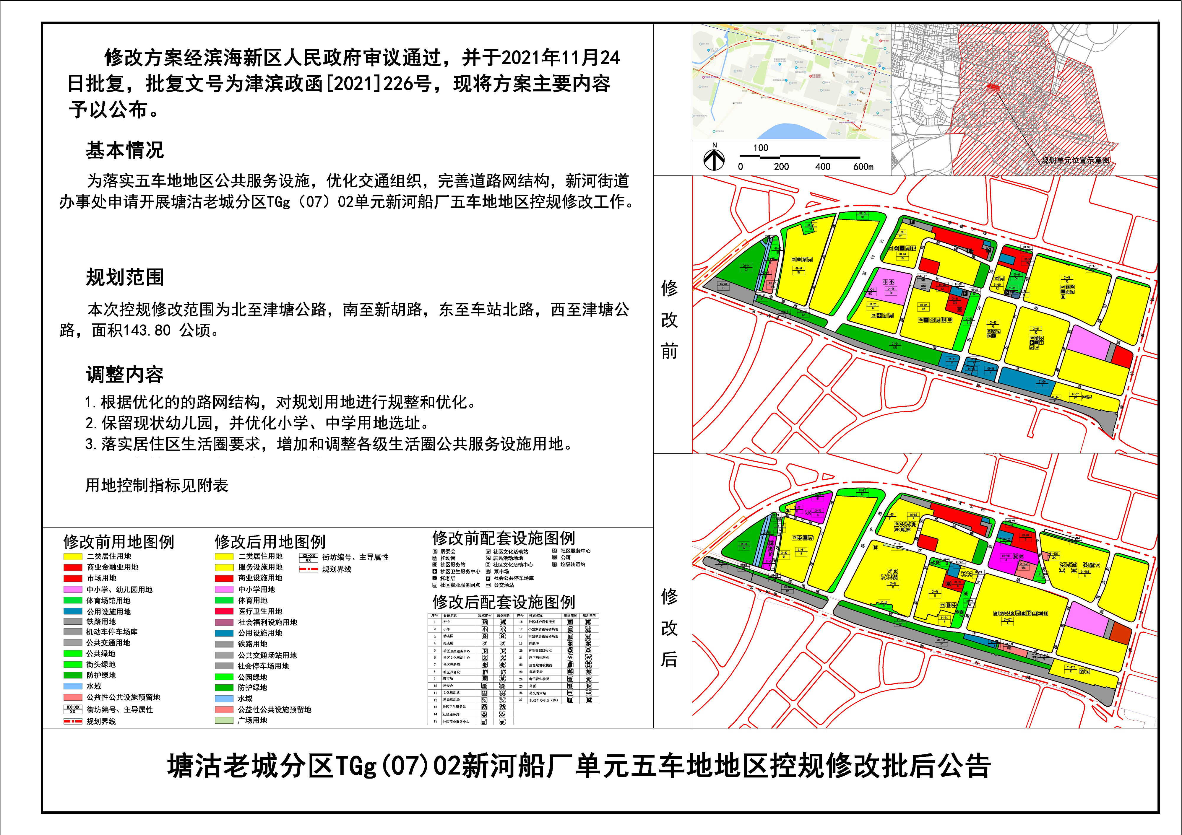 塘沽老城分区TGg(07)02新河船厂单元五车地地区控规修改批后公告